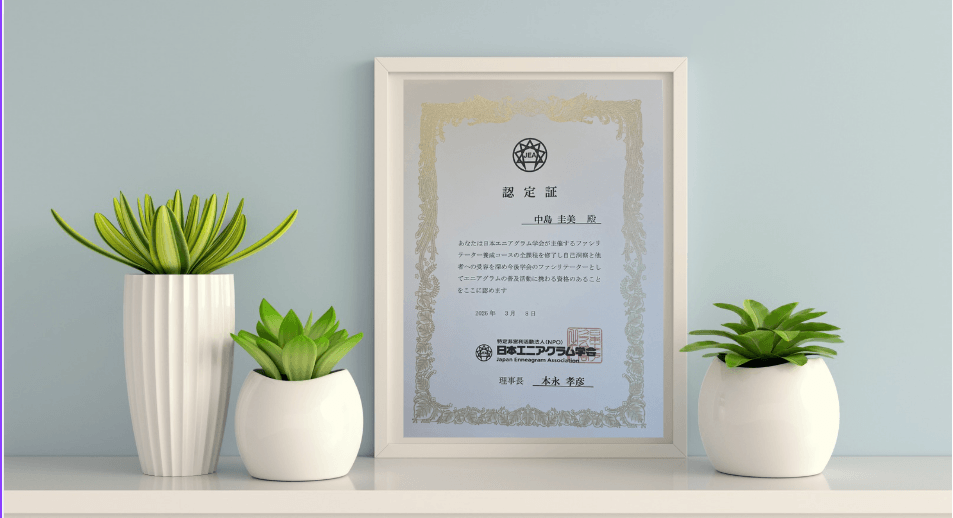 このたび、日本エニアグラム学会認定のファシリテーター資格を取得しました。